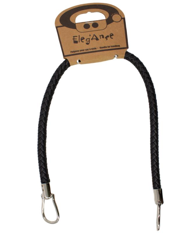 Black leatherette bag handle (x1) Silver
