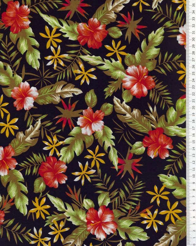 Merci pour vos beaux tissus thème polynésien. 100% coton. Je prendrai prochainement le même en jaune !