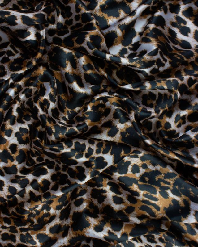 On a leopard imitation, this satin fabric with a very pleasant touch is the fabric you need for carnaval in order to stand out while remaining elegant.