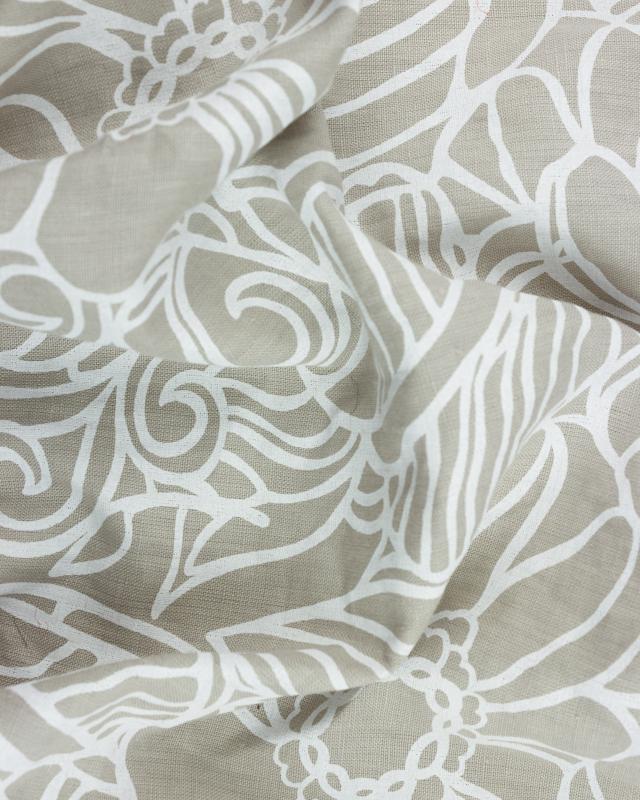Washed linen canvas with floral print in 150cm Pearl Grey